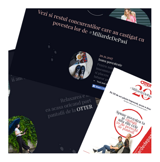 Atunci cand vinzi pantofi de care clientii se bucura de peste 20 de ani, reusesti sa creezi povesti care inspira intreaga comunitate. Campania a avut ca obiectiv crearea de engagemt in randul clientilor Otter la momentul sarbatoririi a 20 de ani de activitate si a implicat intreaga comunitate de blogeri si de clienti. In doar cateva saptamani a generat aproape 1000 de mesaje unice de la clientii care poarta pantofi cumparati online sau din magazinele Otter. Dincolo de actul concret de achizitie, membrii familiei Otter inteleg, recunosc si marturisesc fara ezitare motivele pentru care sunt aproape de brand: calitate, fidelitate, familiaritate.