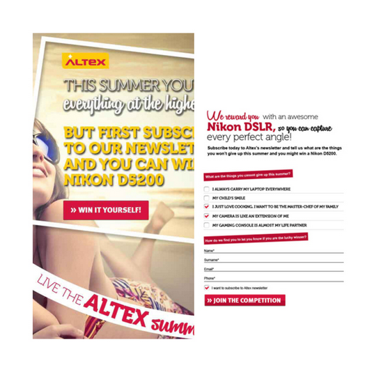 Obiectivul campaniei a fost sa colecteze leaduri folosind tehnici cantitative in prim plan, iar in plan secundar tehnici calitative. Pentru a ne atinge obiectivele propuse, am personalizat pagina de yahoo mail Romania cu aceasta campanie. Userii care intentionau sa intre duminica, 30 iunie 2013, pe contul de mail yahoo erau intampinati in pagina de campania Altex Nikon d5200.